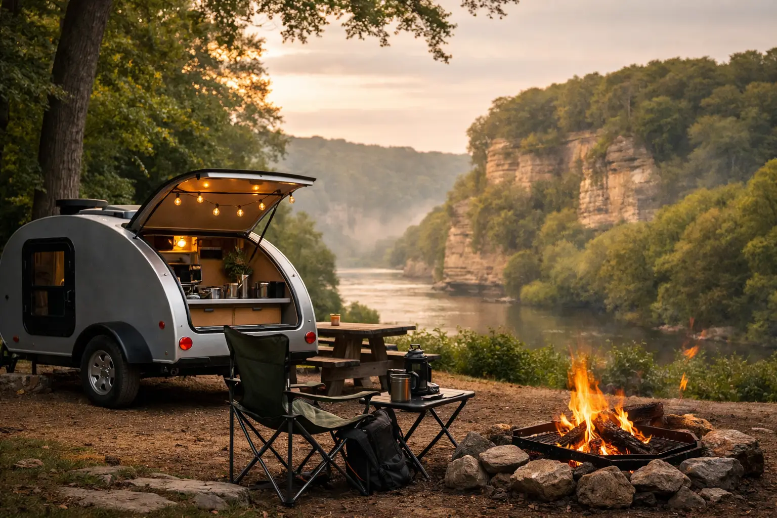 The Illinois River side adds another layer. Instead of a packed itinerary, you get options. Some groups want a classic tent weekend. Others want a pop up or teardrop setup that feels a little easier and a lot less chaotic. Some want to add kayaking so the trip feels more like an experience and less like just sleeping outdoors.